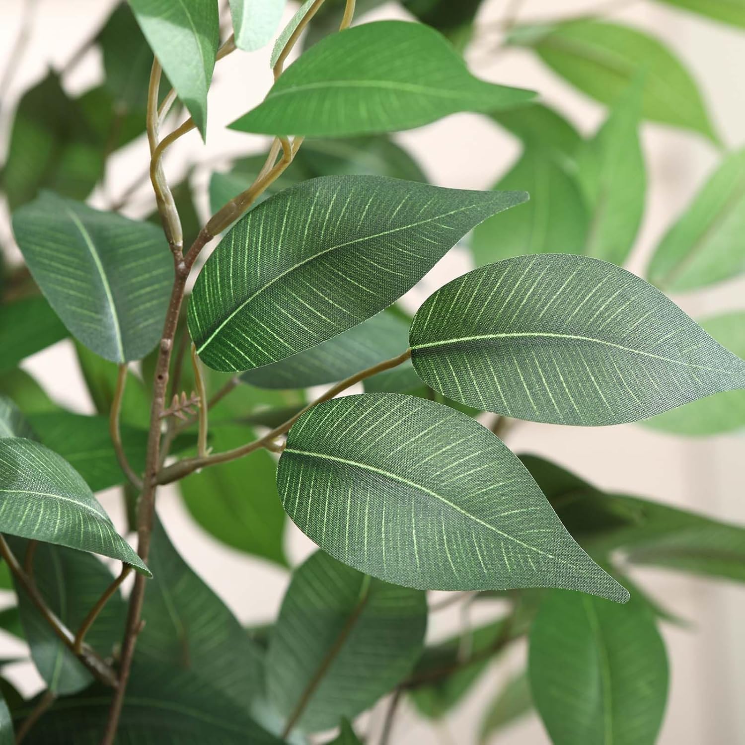 Ficus Artificial Tree 5ft Tall Fake Ficus Tree for Home Decor Indoor Faux Silk Ficus Plant Fake Floor Plant in White Imitation Ceramic Planter with Green Fake Moss, Set of 1