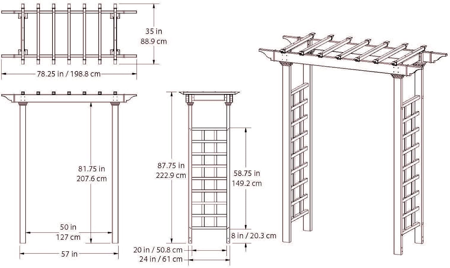 The Carolina Arbor is a stately reinvention of traditional arbor design, bringing a modern charm to any outdoor space. Crafted from durable BPA/phthalate-free embossed PVC, the Carolina gives the appearance of wood with all of the maintenance-free benefits of vinyl. Simple to assemble and install and comes with a 10-year warranty. Note: Opening can be adjusted to span up to 50 inches.